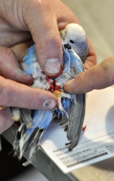 Ten si s její špatnou nožičkou nějakou dobu nevěděl rady. Andulka měla kroužek zarostlý, z obou stran kolem něj nožičku oteklou a nebylo možné kroužek přestřihnout. S pomocí dalšího veterináře se to nakonec povedlo, ale křiku i krve bylo hodně. Po sundání kroužku, nohu dezinfikovali, zastavili krvácení, ovšem patrně se jí cit do nohy už nikdy úplně nevrátí.