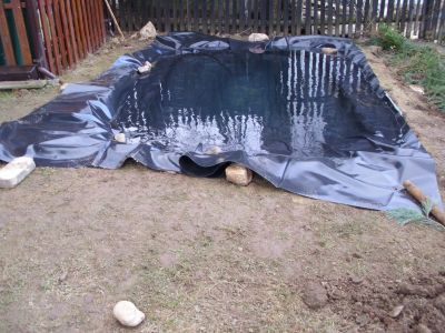 Tak dnes jsem,položil folii a napustil vodu do jezírka,můj výpočet byl přesný 3 m/3 vody.Nyní udělat úpravu okolí nasadit nějaké vodní rostliny a rybky.
