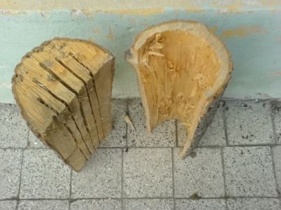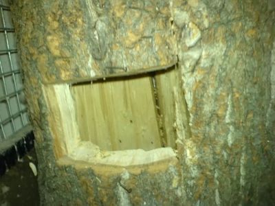Co se týká výroby, tak to není zase tak složité, ale vydlabat z toho budku je složitější. Někteří seříznou vrchní část a dlabou dlouhým dlátem, nebo vyrobeným dlátem až mají pěknou kotlinu. Vrchní část přidělají a mají pěknou budku. Mě jako jednodušší a rozumnější připadá druhů způsob. Máte kmen stromu. Seříznete vrchní část a spodní část asi cca 10 cm (dle libosti) Tyto odřezky se použijí na dno budky a na víko budky. Zbylý kmen stromu se rozřízne podélně motorovou pilou na dvě polovičky. Tyto dvě polovičky se vydlabou, uděláte vletový otvor, přiděláte do vnitř pletivo (jako žebřík) eventuelně si uděláte kontrolní dvířka. Tyto dvě půlky dáte k sobě. Spodní část přibijete ke dvou půlkám, tak aby drželi a vrchní víko buďto přibijete, aby byla budka pevná a nebo si ho necháte odnímatelné kvůli kontrole a snadnější údržbě.