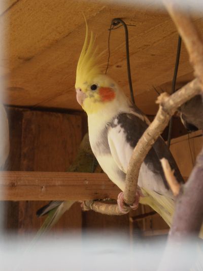 Žakyna,která přišla o celou nohu až u samé p...,přežila a naučila se s tím žít-zavěsí se zobákem a podrbe se,pamlsky si přenáší do krmítka,protože si je nemůže držet a přistávat se taky naučila. .