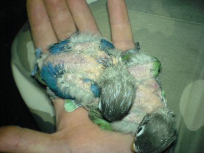 Hicks09.01.2008, 13:47:44xxx.xxx.183.35Ještě jedna fotka. Je zde nádherně vidět napravo jak vypadá nevybarvené mládě modré mutace a jak vypadá dospělá vybarvená matka stejné mutace.