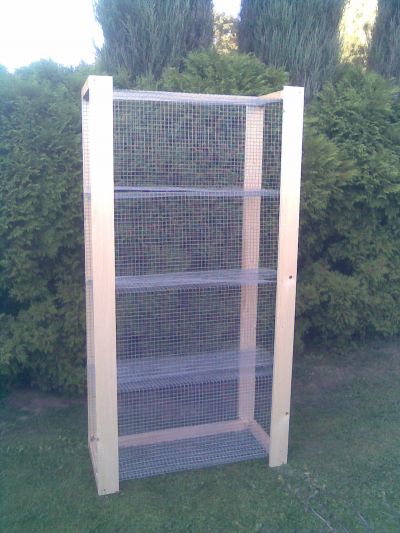 sunflowersman (neregistrovaný)08.01.2012, 19:59:33xxx.xxx.175.196Zde jsou klece. Jsou vyrobeny velmi jednoduše. Použito jen pár desek, hranolů a pletivo. Výhodou je, že stačí mezi klece zasunout karton či lexan, který můžete omývat. Zde ve fázi bez dvířek. Tuto sestavu jsem měl hotovou za necelé jedno dopoledne, bez dvířek. Montáž velmi snadná, nepotřeboval jsem k tomu žádnou pomocnou ruku navíc pro přidržování. Po zimě zavěšené klece z pletiva vyjmu a připevním na nové desky.
