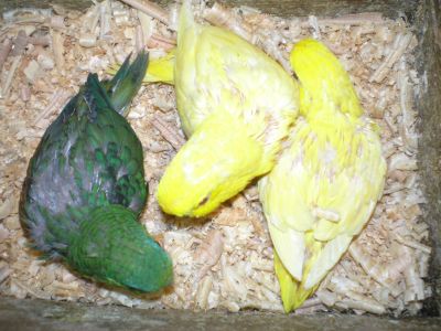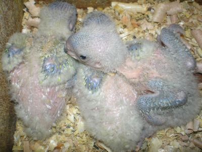 U mě nejdříve zahnízdil pár agapornisů etiopských, čtyři vejce plná a tři mláďata vyklubány, dvě přírodní, jedno mládě tmavězelené. Dále mají poprvé snůšku alexandři rudohlaví, z pěti vajec jedno plné, na první hnízdění i tohle by byl pro mě úspěch :). Dále mě hnízdí tři páry aymarů. první pár tři prázdná vejce, druhý pět plných a třetí čtyři vejce a tři jsou plné. Největší překvapení jsem letos zažil u jednoho páru pyrurů červenobřichých, kteří se dali do hnízdění a posléze se ukázalo, že samec s DNA je samice. Tohle mě hodně zklamalo, jelikož jsem se u tohoto páru opravdu na hnízdění těšil a čekal jsem prakticky od roku 2009. Mé zklamání jako by vycítili kolegové, již chovní červenobřiší, kteří si minulý rok dali přestávku a očekávám snůšku co nevidět. Nedávno jsem prohodil u dvou párů papoušíčků samce, aktivita se zvýšila, ale jen na pár dní. Zkusil jsem opětovně samce vrátit a odloučení partnerů zdá se zabralo, všera jsem u jednoho páru pozoroval páření a úpravy budky , druhý pár navštěvuje boudu.