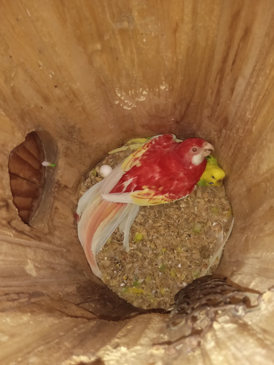 To je docela rarita, kdyby byla místo rosely korela, tak už se mi to stalo také. Rosela je docela agresivní takže máte velké štěstí, ještě bude ale zajímavé sledovat až se vylíhnou mladé u obou druhů. Informujte dál jak to dopadne.