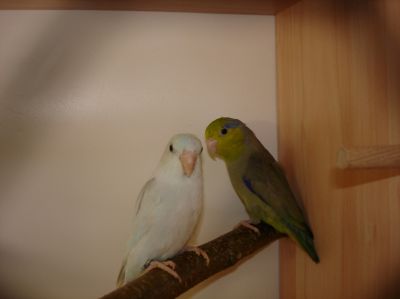 Zde je jeden z mých párů AMERICKÁ BÍLÁ SAMIČKA a TmavoZELENÝ Sameček.... :-)