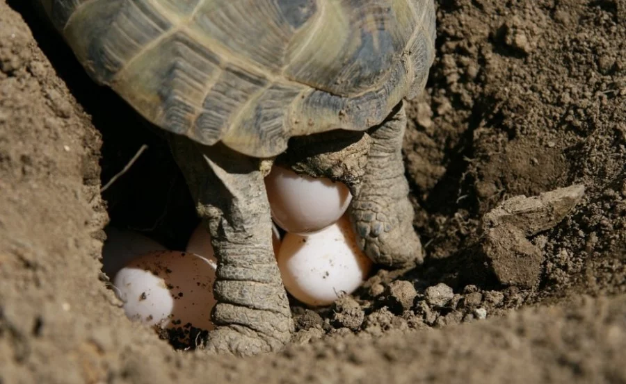Želva stepní-při snášení