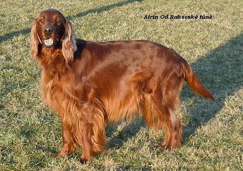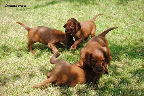 Chovatelská stanice Od Rakovské tůně zabývající se chovem irského setra nabízí štěňátka po lovecky vedených rodičích s výbornou vyrovnanou povahou. M: AIRIN OD RAKOVSKÉ TŮNĚ. Výborná 10x, CAJC, res. CAC 2x, CACIB, BOB 2x, Ch. ČR, DKK 0/0, PZ - I.c. (256/4 b), SVP II.c. (68 bodů). O:BENJAMIN BINGO NONSTOP. Ch. ČR, BOB, CACIB, DKK 0/0, PZ I.c. (293/4). Štěňátka jsou plně socializovaná, odčervená, očkovaná. Krmena kvalitními granulemi. Odběr možný ihned. www.setr.estranky.cz T: 603 227 043, doktor.vavra@seznam.cz, http://vavra.kx.cz/