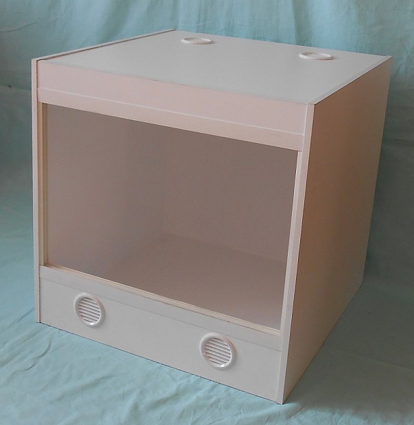 6 terárií - šířka 120 cm, hloubka 50 cm, výška 30 cm. Základna sklo tloušťky 6 mm, boky, záda a strop 5 mm, dvířka 3 mm. Větrání pod dvířky v celé délce...