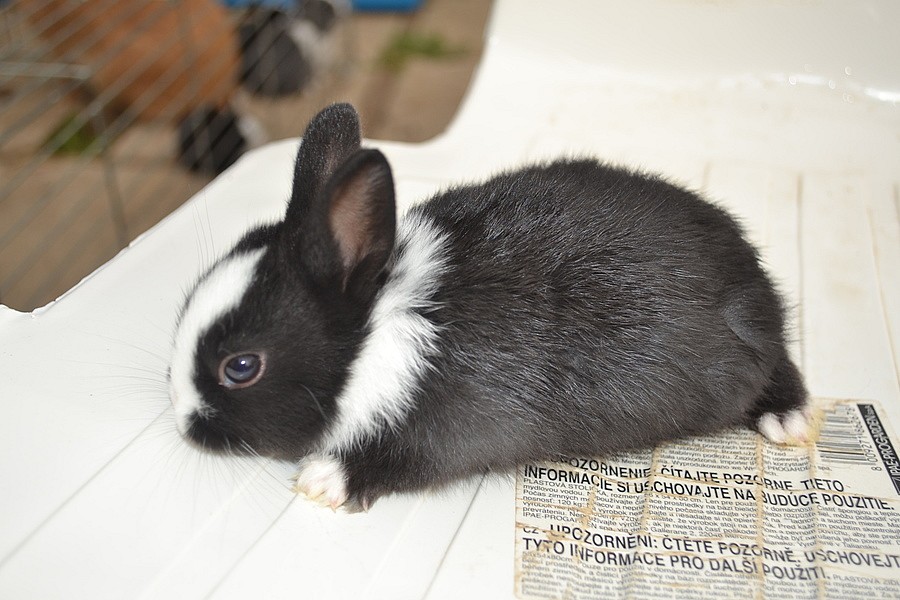 Prodám zakrslé králíčky. Černo-bílí. Očkovaní na kr.mor a myxematozu. Odběr okolo 10.8.14 . Odchovaní venku. K vidění v Želízích u Mělníka. Tel.: 606252450
