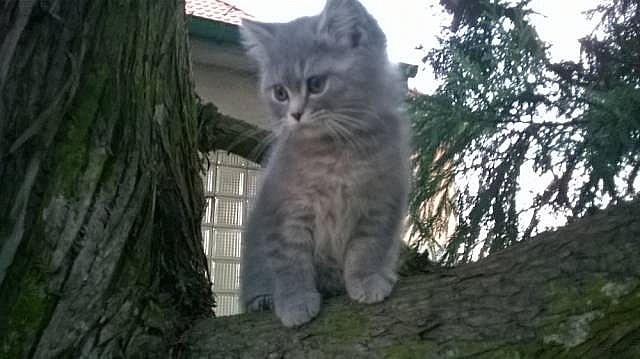 Modrý, krásně zbarvený tříměsíční kocourek, hledá svého páníčka, ke kterému by se mohl přitulit a být mu milým společníkem. Máma už se se mnou moc tulit nechce, že prý se mám postavit na vlastní tlapky. Jsem velký mazel, zvědavý jak opička, čistotný, očkovaný, odčervený, naučený na kočičí WC. Žiji výhradně v bytě, na zahradě jsem jen při fotografování a občas asistuji současné paničce při pití kávičky. Moc se těším na nový pelíšek, ocením i škrabadlo. Kamarádím i s malými pejsky, jsem snášenlivý, i když zpočátku nedůvěřivý.