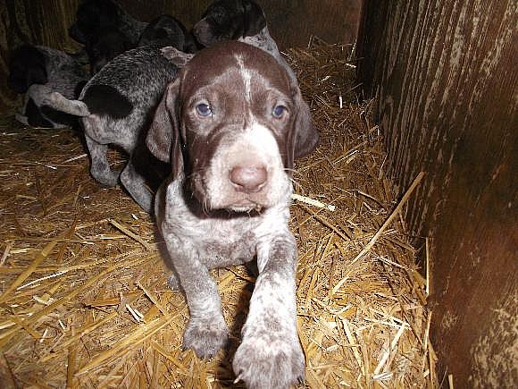 Prodám štěňata německého krátkosrstého ohaře s PP, hnědý bělouš, po výborných rodičích, odběr po 10.9.2014.