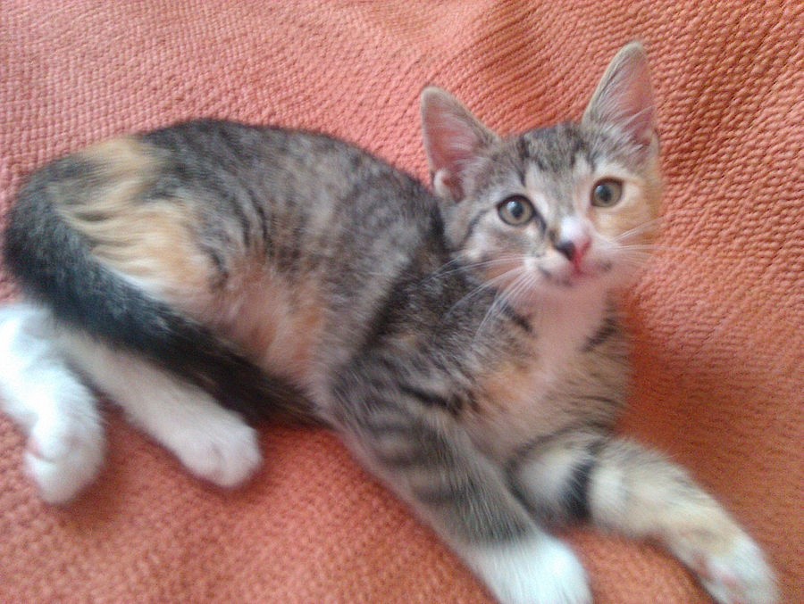 Asi 3-4 měsíce stará kočička, hodná, čistotná, rozvakcinovaná. Tel.: 777214680
