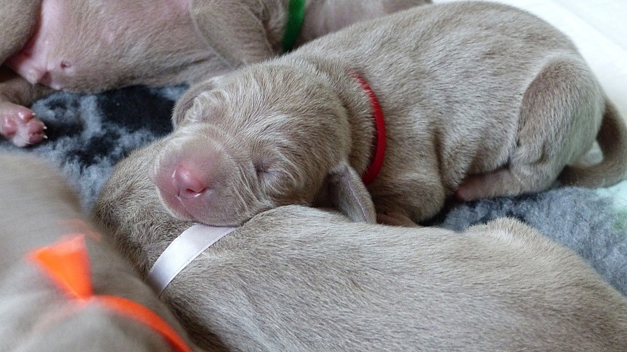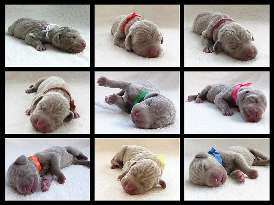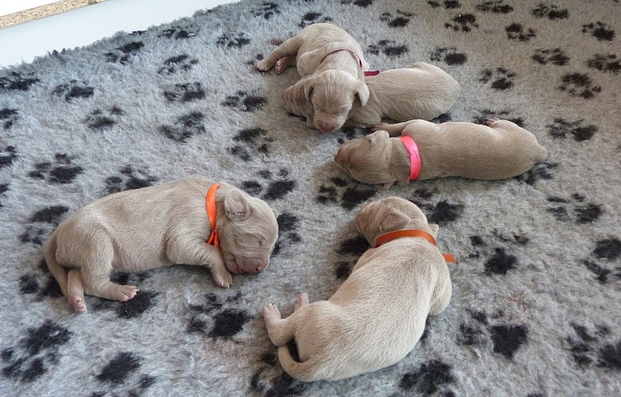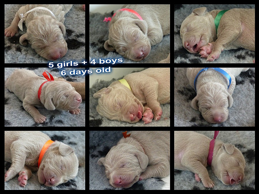 CHS La Vita Eterna zadá štěňátka Výmarského ohaře krátkosrstého s PP, narozená 7.8.2014, v poměru 5 fenek a 4 pejsci.