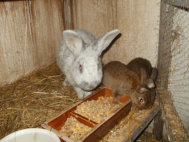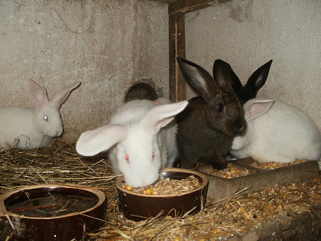 Prodám králíky z domácího chovu,masný typ na zabití,chov,nebo na dokrmení.Stáří 3 měsíce..Váha v dospělosti okolo až 5kg.Křížené s belgickým obrem,stříbřitou velkou.Přeléčené proti kokcidioze. Cena 250,-za kus,při odběru nad 6 kusů cena 200,- za kus