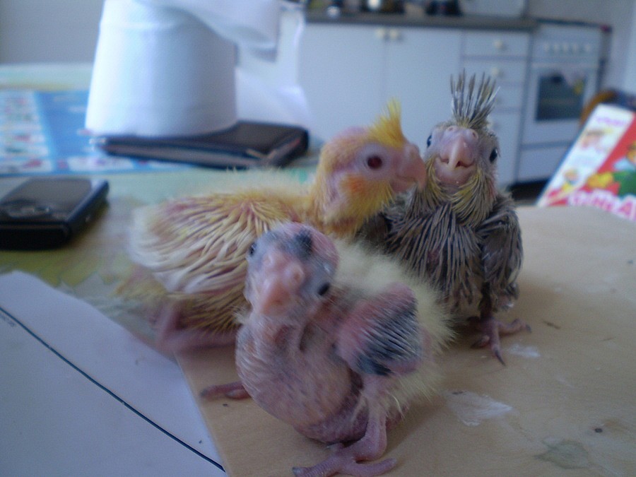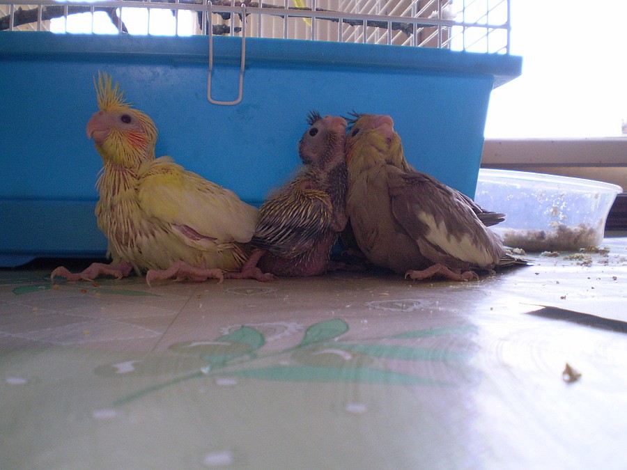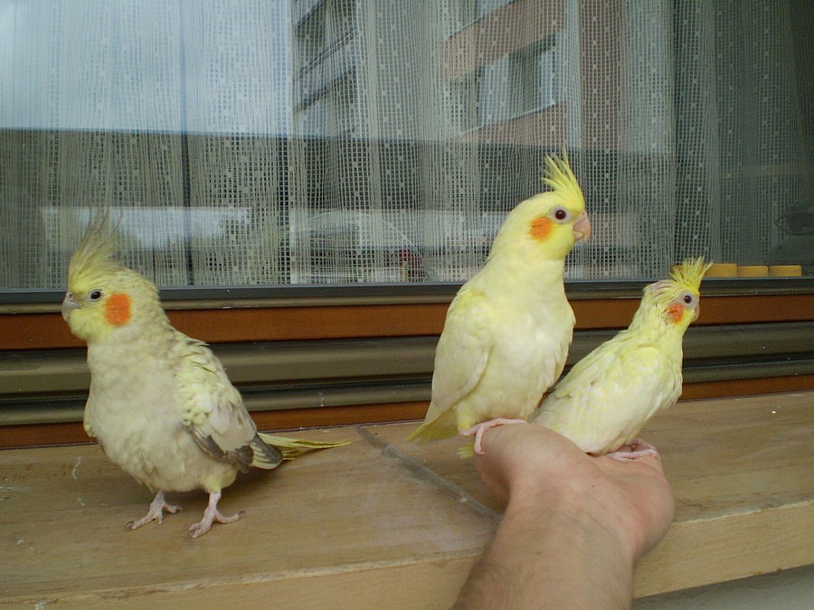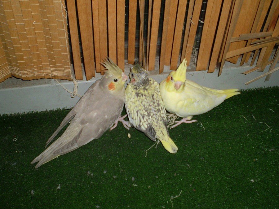 Tři ochočené, ručně dokrmené mladé korelky, narozené v červnu 2014. Korely jsou hraví papoušci, které lze naučit mluvit. Jsou vhodné k dětem a budou i dobrými společníky pro starší lidi.