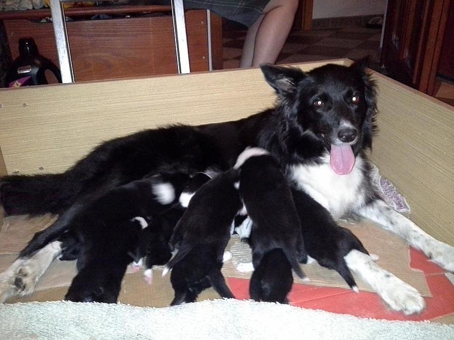 Border kolie - štěnata bez PP , černobílé zbarvení. Po výborných rodičích, otec Black po rodičích s PP, žije na statku u koní a je neustále v pohybu, je klidný a velice poslušný, matka Saia po fence Dora s PP, po ní zdědila velice klidnou povahu. je poslušná, neunavná a hravá, s láskou k míčku. Máme 6 kluků, zatím možnost výběru. 5.000 Kč.