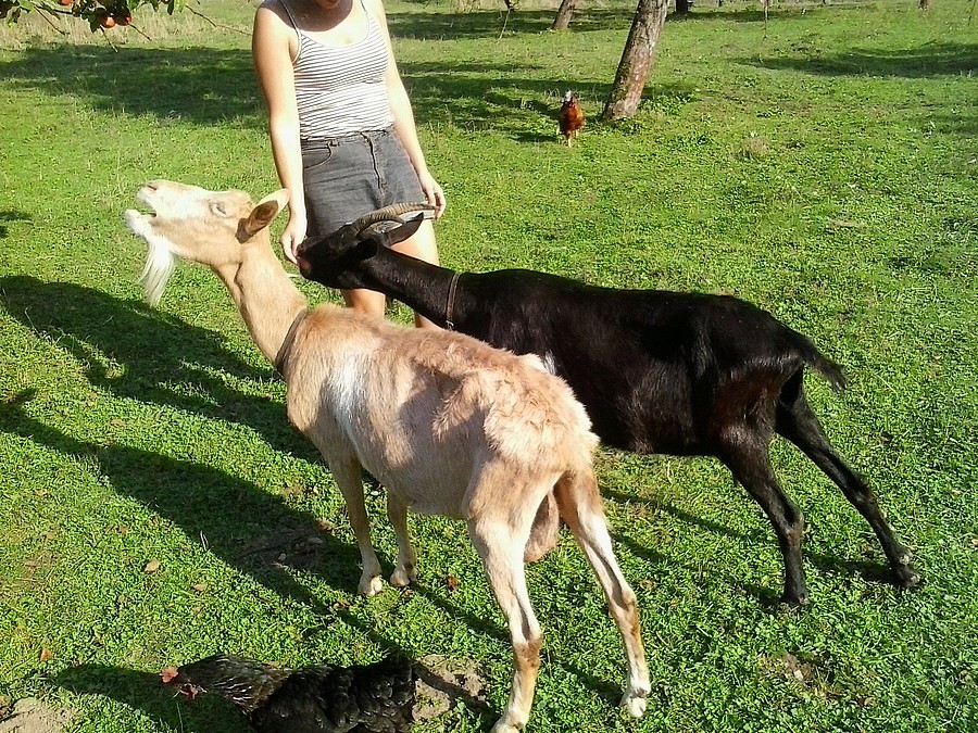 Dobrý den, z důvodu stěhování prodám dvě kozy: černou Hvězdu (cca 4 roky) a hnědou Zrzku (cca 10 let). Jsou přátelské, zvyklé na ruční dojení a pobyt venku. Kozy už jsou zasušené a dosud nepřipuštěné - vhodné do stáda s kozlem. Na prodej pouze dohromady.