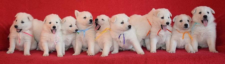 Bílý švýcarský ovčák - štěňata s PP, z chovné stanice Pett´s Wolf vrh D. Štěňátka se narodila 7.11.2014 k odběru začátek ledna. Máme 8 feneček a 3 pejsky. Oba rodiče přátelské, klidné a vyrovnané povahy a oba DKK i DLK 0/0. Otec šampion ČR. Štěňátka budou mít 24 hodinovou péči, budou plně socializovaná, odchovávána v baráku i na zahradě, budou v kontaktu se smečkou vlčic a bílých ovčáků i s kočkami. Odčervená, očkovaná, tetovaná.