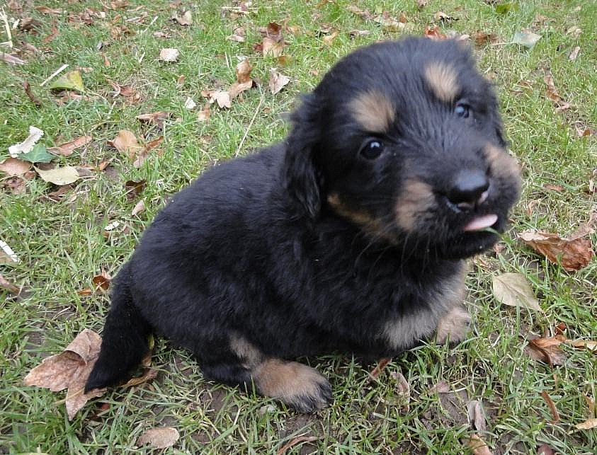Hovawart. Prodám krásná čistokrevná štěňata Hovawart bez PP. Černá se znaky. 4 psi + 3 fenky. Narozená 18.11., očkovaná, odběr možný ihned. Výborní hlídači i společníci.