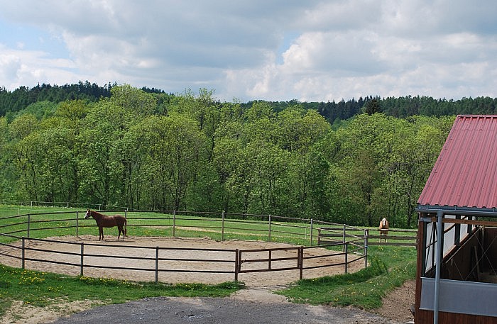 Výběhy na rozloze 10ha, dělené elektrickým ohradníkem i pevnými dřevěnými ohradami.