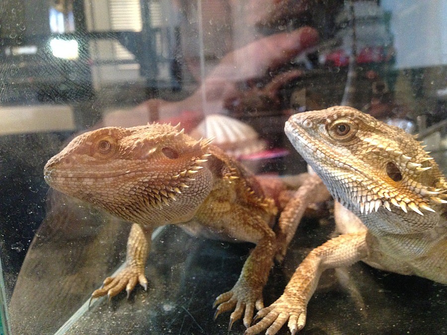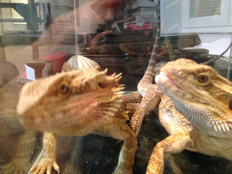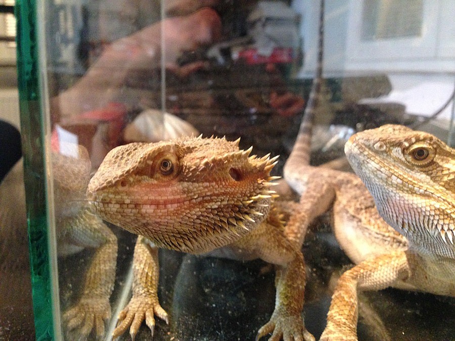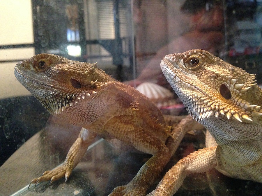 Agama vousatá 2 samci na páření