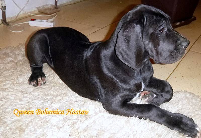 Bohemica Hastav prodá štěňata s PP černé fenky, m: Letrisa Bohemica Hastav, O. Dynamit Helza exelent, chovnost Eu. DDC, socializovaná štěňata, odčervená, očkovaná jsou k odběru. Na snímcích fenky Qwenn a Qwinte v současném věku 2,5 měsíce vhodné k odběru, a jejich otec.