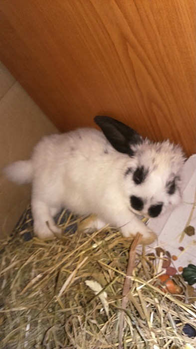 stáří rok a půl, nekastrovaná, po mláďatech, uvolňují ji z chovu z důvodu redukce, je hodná, nekouše, nechá se hladit, chodí na králičí WC, barva modrá perlová,...