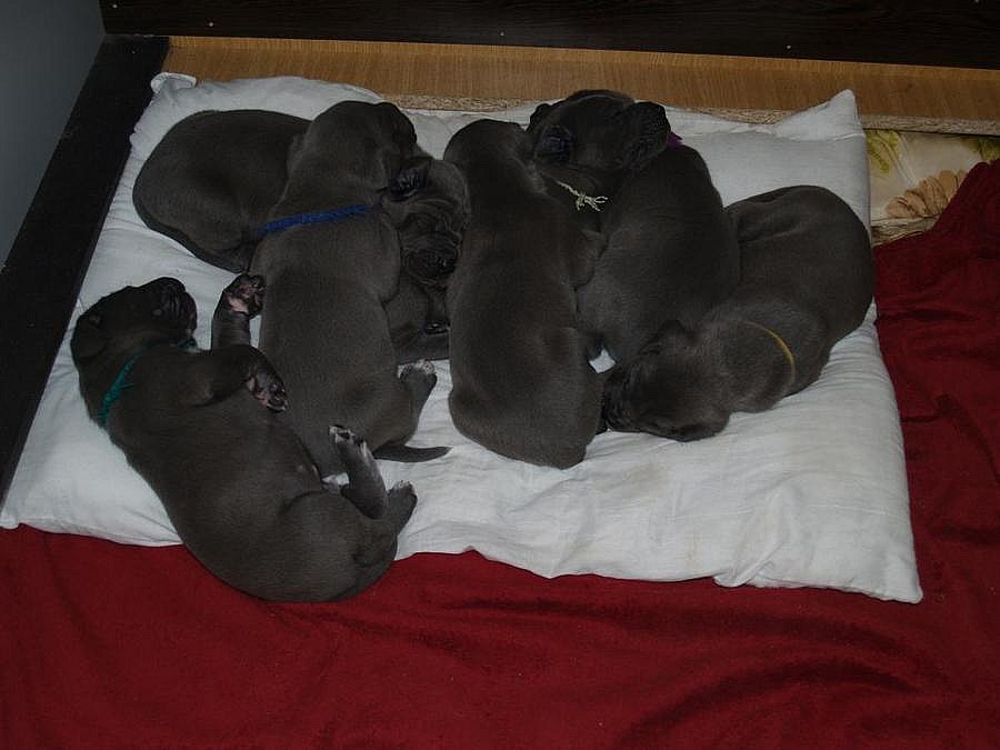 Německá doga - chovatelská stanice z Modrého ráje prodá nádherná štěnátka modrých kluků ze spojení: C.I.B., Mult.Ch. Almansors Quintus Mirabilis Gemma x 2xBOJ Emmeleine von Mraque. Odběr koncem února. Chovatelský servis samozřejmostí. Nezávazná náštěva vítána. Více na www.