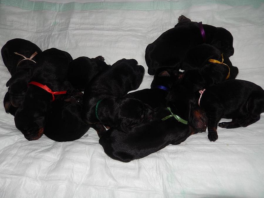 Prodám štěňátka dobrmana.Po rodičích s PP, výborné povahy s výcvikem a plně zdraví. Štěňátka jsou všechny černá 2 kluci a 6 holčiček. Budou plně odčervená, očkovaná s kupírovaným ocáskem. Štěňátka jsou vhodná pro hodné a aktivní lidi.Tel: 724715628 email hanaslovakova@centrum.cz K odběru od 3.3.2015