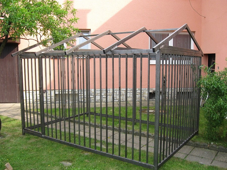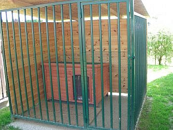 Prodám nový rozebírací kotec pro psa. Cena bez střechy 6000,- Doprava v ČR do 1000,-. Materiál je jekl 35x35,trubky 22mm,mezera mezi trubkama 95mm. Platba při dodání.