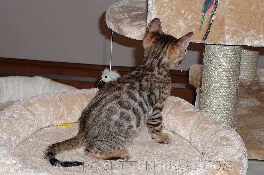 Chovatelská stanice RosetteBengal zadá mazlíčka bengálského kocourka ze spojení Basalia Spongilit x Taurion Heaven (imp. HU), narozen 17.12.2014. Oba rodiče testováni FIV, FELV, HCM - vše negativní, PKDef N/N-otec, PKDef N/K-matka. Kocourek má výrazné rozety, získá zlaté zbarvení po rodičích. Bude očkovaný, odčervený, kastrován, registrací u TICA, veterinárním potvrzením o zdravotním stavu. Kupní smlouva a doživotní chovatelský servis je samozřejmostí. Koťátka odchováváme s láskou v rodinném prostředí, zvyklá na děti, vymazlená, nebojácná. Cena za mazlíčka je již včetně kastrace. Podrobnější informace k prodeji koťátek a více fotek na http://www.rosettebengal.com