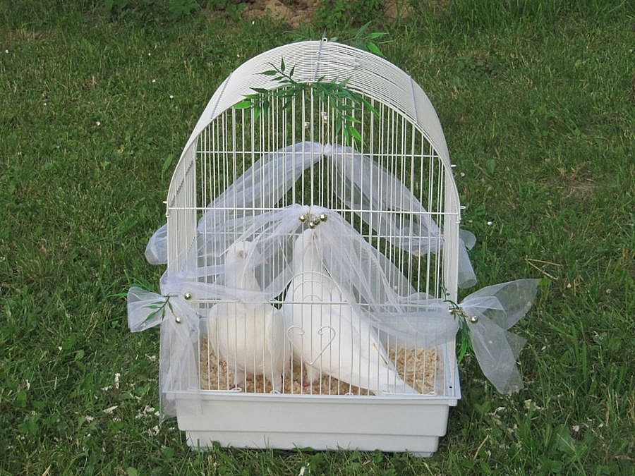 Nabízím pár svatebních holubic ve svatebně nazdobeném koši či kleci k příležitosti Vaši svatby. 700,-Kč/pár, Zdeněk Jastřembský 776 666 211