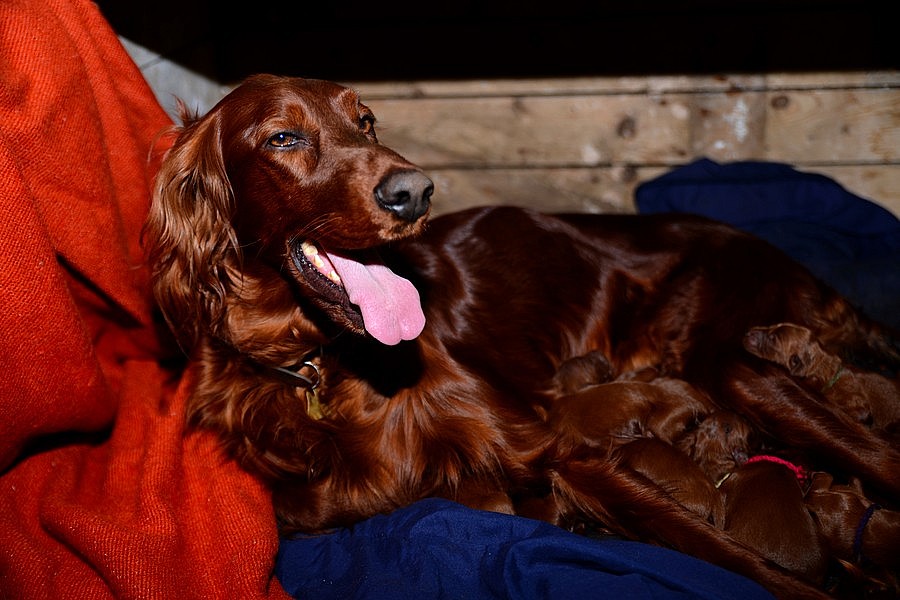 Prodám štěně irského setra bez PP, matka s PP, otec bez PP, oba k vidění. Štěňátka budou očkovaná a 3x odčervená. Odběr okolo 10. května.