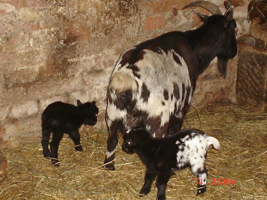 na 1-3 fotce děti kozlíka jednou měl trojčata a pak měl dvojčata a jedou 1 to co tet prodáváme matka je menšího zrustu proto jedno kůzle