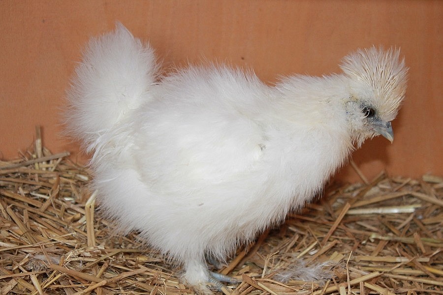 Hedvábnička bílá vousatá,dva kohoutci líhnuté v únoru,cena za kus
