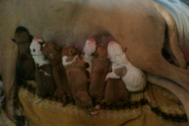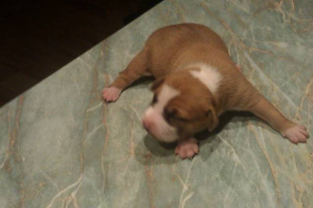 Nabizim stenata americkeho staforcirskeho teriera 6 fenek 2 psi zlati s bilymi znaky rodice bez PP vyrovnani s skouskami rodini mazlici