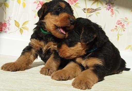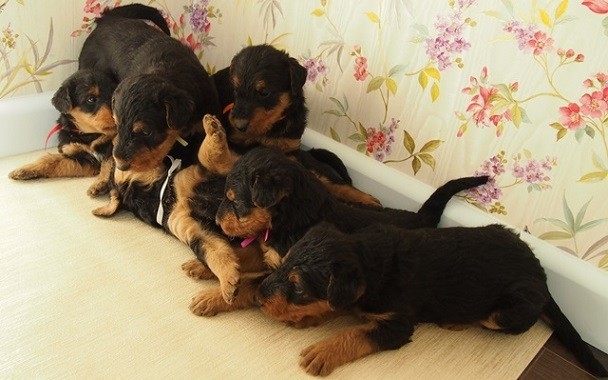 Erdel teriér šteniatka s PP - Airedale terrier: Ponúkame na predaj krásne šteniatka airedale teriéra po importovaných rodičoch s výborným rodokmeňom a s bohatou výstavnou kariérov /matka import Nemecko:ICH Aischa vom Erfuther Hof - otec import Anglicko:Saredon Big Brother/ vhodné na výstavy, chov, výcvik alebo len ako rodinný miláčik. Šteniatka budú k odberu koncom 6/2015 odčervené, očkované, čipované s Petpasom a štartovacím balíčkom krmiva. V prípadne záujmu vieme poskytnúť kompletný chovateľský servis - viac info: www.sunnily.sk / e-mail: pavlah@centrum.sk / tel.: +421903545115