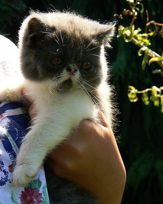 Exotická kočka - exot. bicolour kocourka bez PP, 2x odčervený, očkovaný. Možnost odběru ihned. Nar. 3. 4. 2015. M: peršanka - černá želva, O: exotický krémový. Cena dohodou. Vodňany.Prosím pouze volejte.