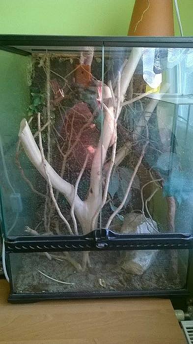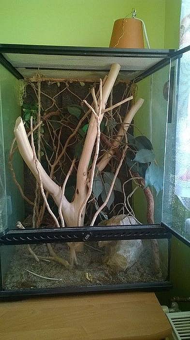 Terárium po hroznýši, 100x50x50cm. Zadní a boční stěny 3D, přední sklo, zabudované světlo. Pro více informací mě kontaktujte, klidně zašlu více foto i...