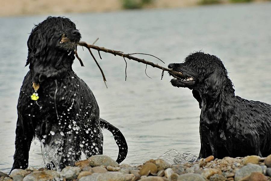 Portugalský vodní pes- 2x hnedý pes, 2x čierny pes