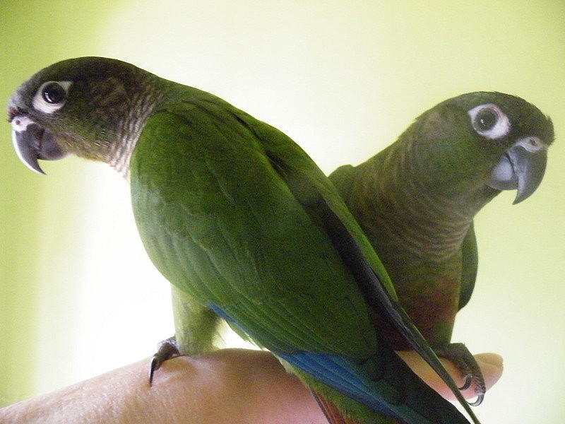 Prodám ručně dokrmené pyrury zelenolící. Krotcí a nebojácní mazlíci, není problém ihned si je doma pouštět volně a nosit na ruce nebo na rameni.