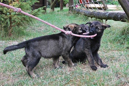Německý ovčák - štěňata s PP z pracovního spojení. O: Chirro Majorův háj -5CKY1/P, BH,IPO 3, SchH -VPG3, ZVV2, FPr 2, FH1, ZPS 1 - účastník výběrových soutěží MR IPO ČKS, MR ČKNO, účastník TOP 15,DKK neg. M: Besi od Zbojníka - 5JV1/P,BH, IPO 3, FPr3, ZVV1, ZPS 1, DKK neg. Oba rodiče výrazní aportéři a kořistníci. Řada ocenění ze soutěží a závodů. Předpoklad vynikajích vloh nejen pro sportovní kynologii. Očkovaná, odčervená, návštěva vítána. Odběr ihned! 8.000 Kč.