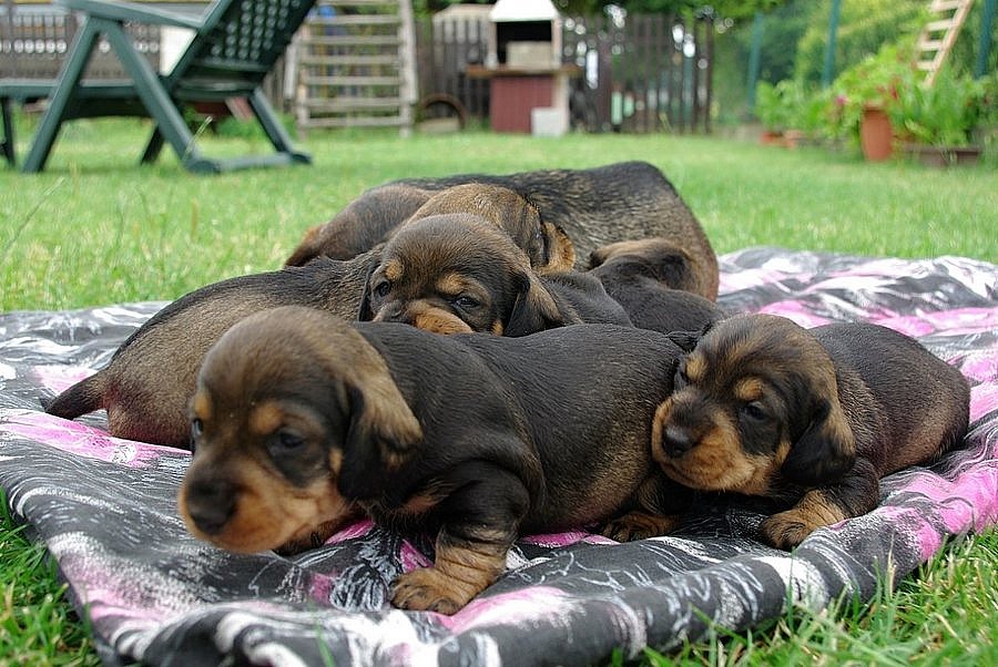 Jezevčík drsnosrstý - chovná stanice "Z Verhanu" nabízí stěňata jezevčíka drsnosrstého standard s PP. Vržena 6.7.2015. Odběr Možný konec srpna,začátek září. Otec: Luis Horalka, matka: Amélie Pali Moravia. 5.000 Kč.