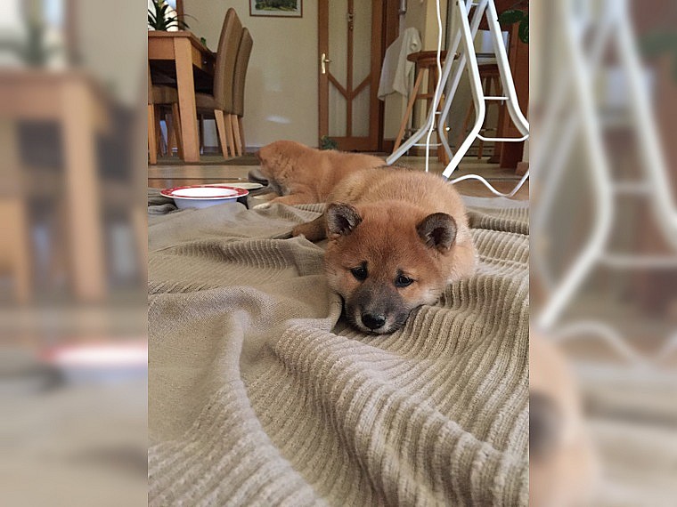 Prodám 3 měsiční štěně Shiba inu. Velmi hravá, zdravá, očkovaná, 3x odčervená. + 7 kg junior Friskies granuli, obojek, hračky, oblibenou dečku.