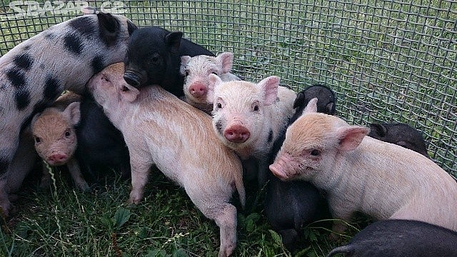 Nabízíme 5 zdravých selátek: 1 kluk (černý) 4 holky (béžové s flíčky) Cena: 800 Kč/kus Selátka jsou aktivní, zvyklá na lidi a vhodná do chovu nebo do...