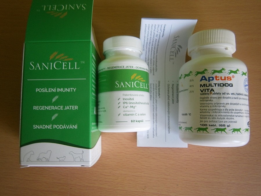 Nabízím nové balení Sanicellu pro pejsky-60kaslí,zvyšuji ochranu proti nadorovym onemocnění,podporuji zastavení rustu metastaz,napomahaji regeneraci jater,ap .puv cena 465,přidám zdarma 50kapsli vitamínu pro pejska-již nevyužiji