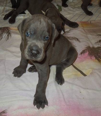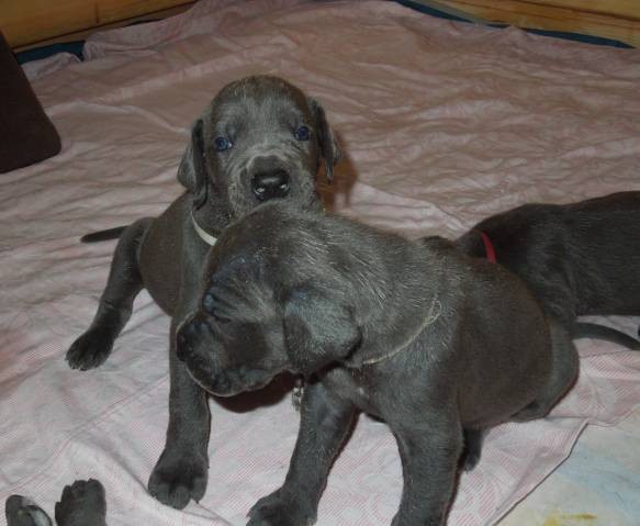 Nabízíme štěňata německé dogy modré s PP, ze spojení Beyla z ch. s. Cameron dog Czech, otec Woodoo vom Herstallturm. Předpoklad vyrovnaných povah, bezvadného zdraví a skvělého vzhledu. Odchov v rodinném prostředí. Odběr možný od 6. 9. 2015, místo odběru Mlékojedy u Neratovic. Cena 20.000,- Štěňátka budou očkovaná a čipovaná. Více fotek na http://bit.ly/camerondog info na tel. +420 730 540 315