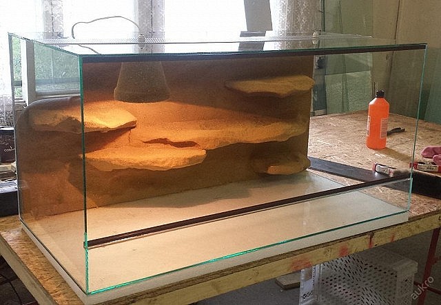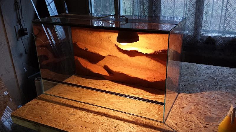 Terárium po hroznýši, 100x50x50cm. Zadní a boční stěny 3D, přední sklo, zabudované světlo. Pro více informací mě kontaktujte, klidně zašlu více foto i...
