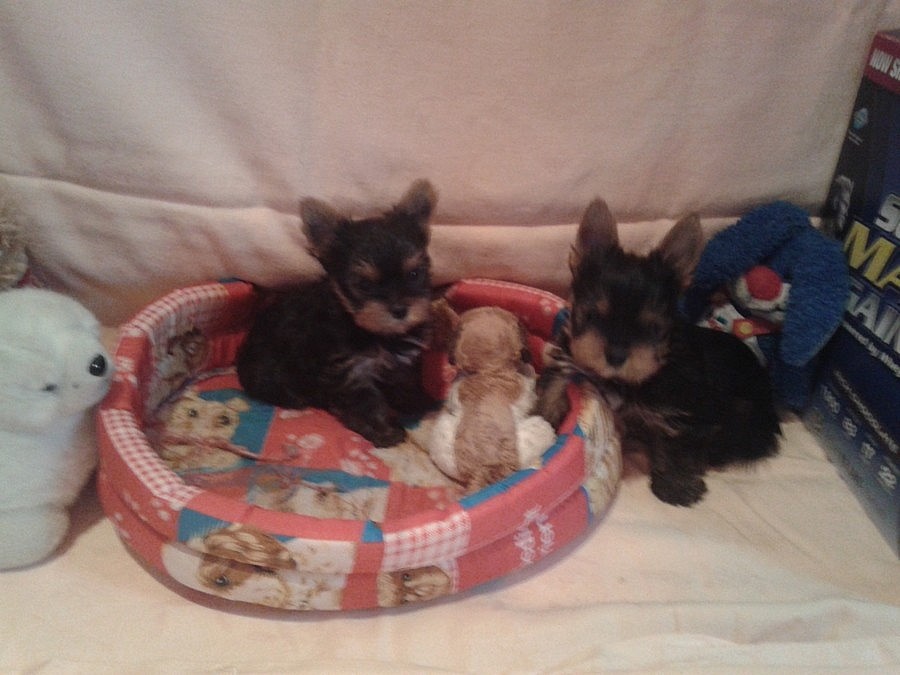 Prodáme štěnátka jorka bez pp. kupírovaný ocasek 8 týdnů. 3xodčervená+očkovaná.V dospělosti do 2,5kg.Štěnátka jsou učena čůrat na papírovou podložku.Kupní smlouva.