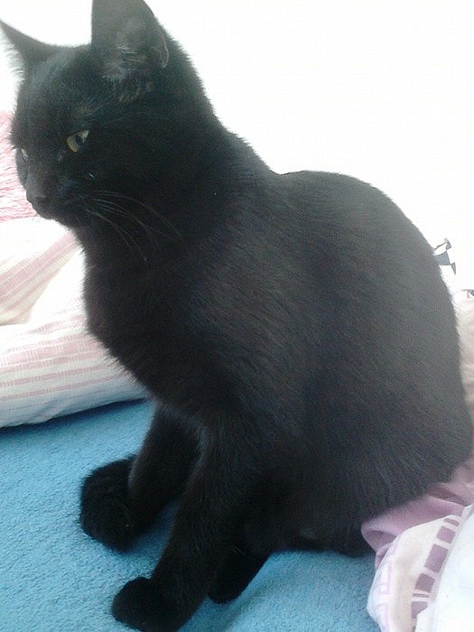 Asi půlroční kocour, hodný, ale v kontaktu s cizími lidmi opatrný, ošetřený proti parazitům, rozvakcinovaný. Tel.: 777214680